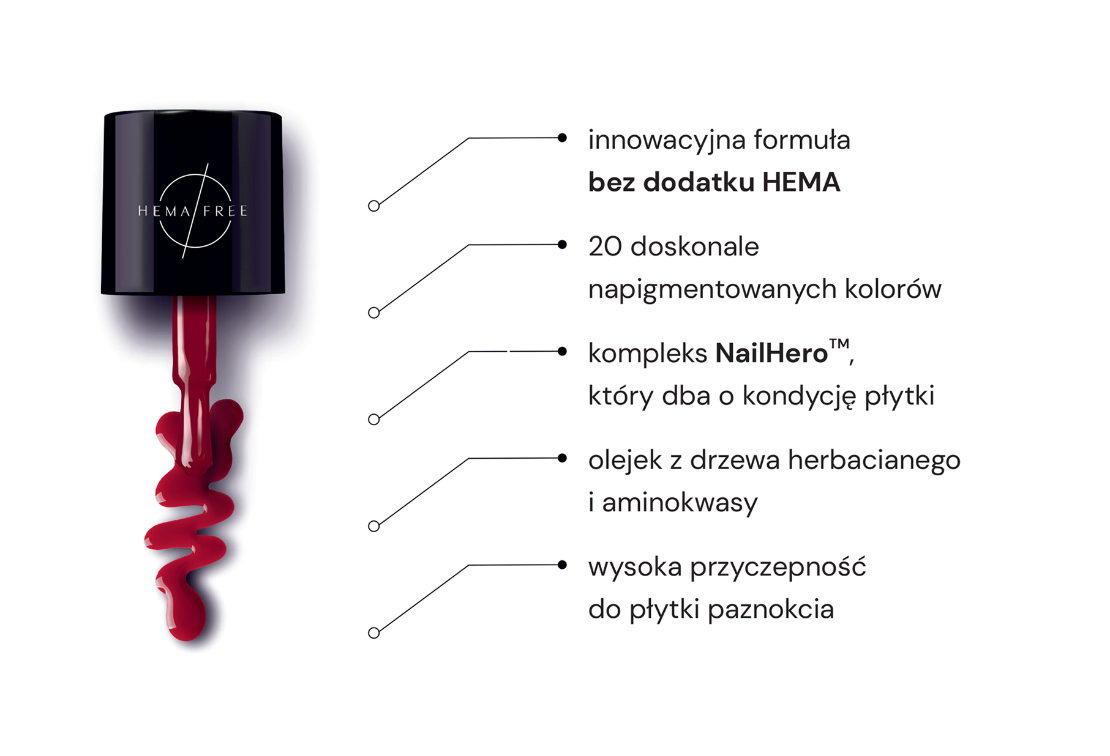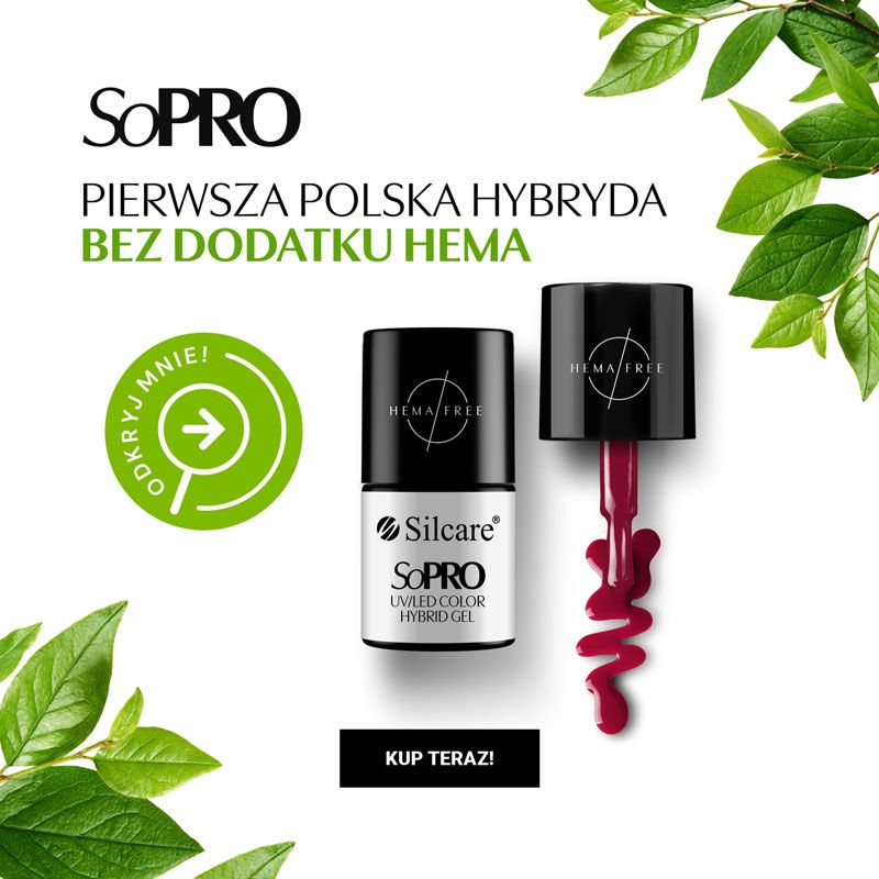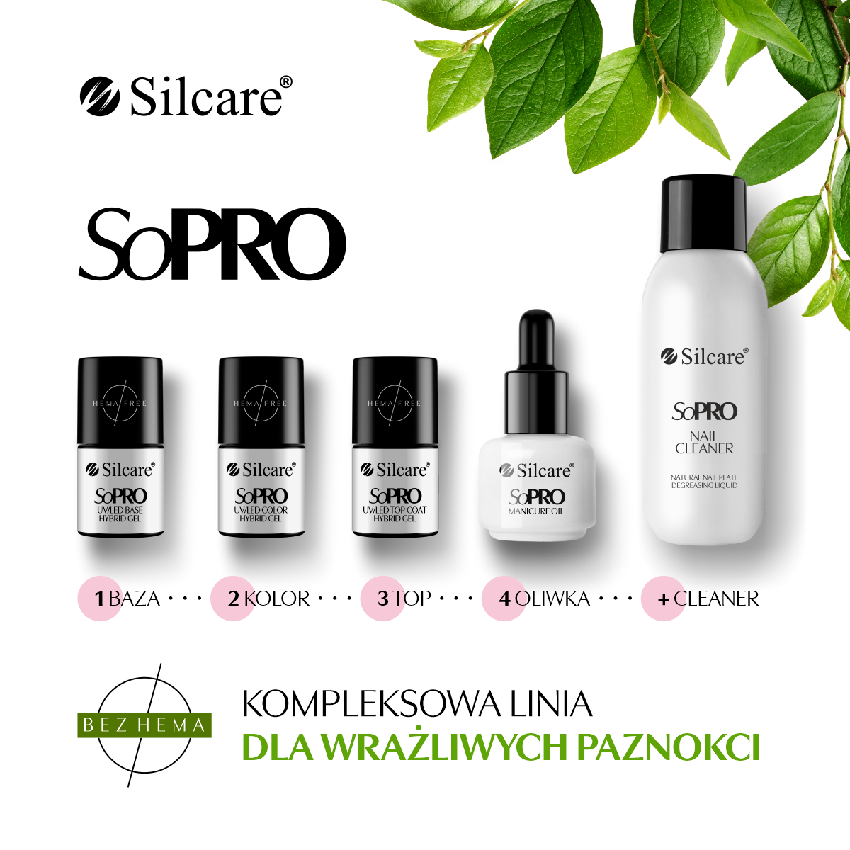 SoPRO UV/LED Hybrid Base to profesjonalna baza pod lakiery hybrydowe, oparta na rewolucyjnej formule bez HEMA, która jest przyjazna nawet wrażliwej płytce. Hydrolizowane białko roślinne, aminokwasy, olejek z drzewa herbacianego i witamina E zawarte w kompleksie NailHero gwarantują wzmocnienie płytki o ponad 30% oraz zauważalną redukcję łamliwości.